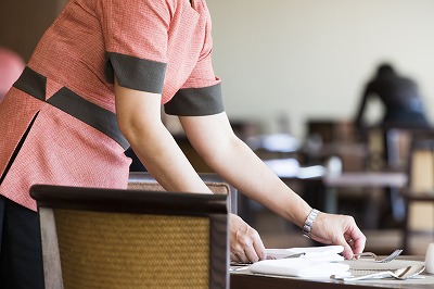 お客様案内、バッシング、テーブルセットを行う
