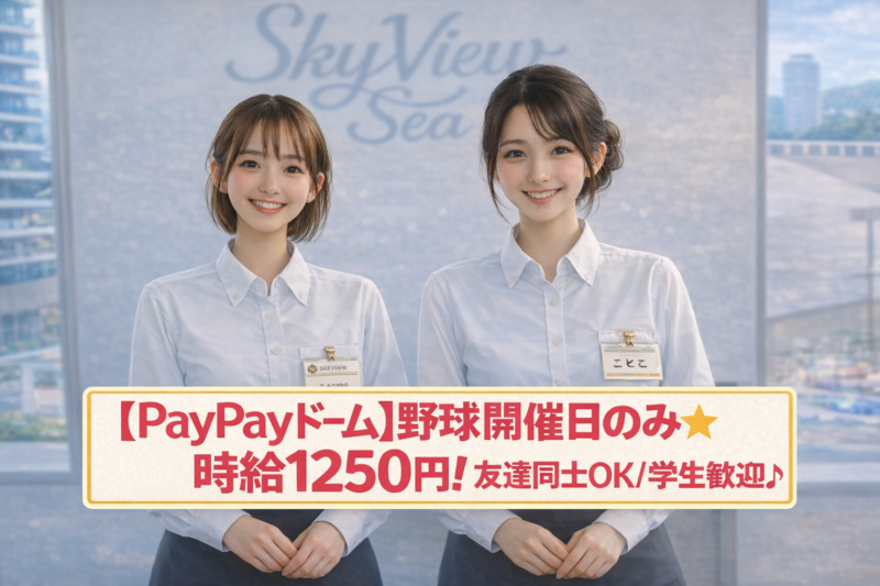 - 職種:【みずほPayPayドーム】野球開催日のみ★高時給1250円/学生歓迎!